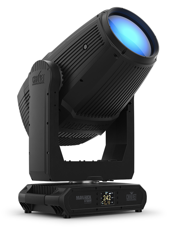 Maverick Storm 4 SoloWash An outdoor-ready IP65-rated single source 1250W LED wash engineered to meet demand for classic wash looks with the modern features LDs expect and bright enough for stadium level long throws: CMY + CTO color mixing system offering a wide color palette, independent color wheel with CRI and CTB filters, expansive 9.5:1 zoom, rotating gobo wheel with interchangeable geometric gobos, framing shutters, animation wheel, frost and iris. Built with the durability and versatility to perform in any venue, indoors or out, and calibrated to match the colors of other Storm fixtures in the rig.