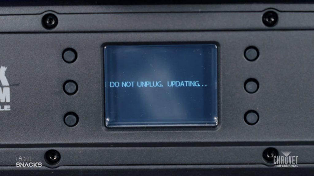 And now for our second important note: If there is no DMX signal coming into the box, it will not connect to the fixture, so be sure the DMX cable connected to the box is receiving from a DMX source.