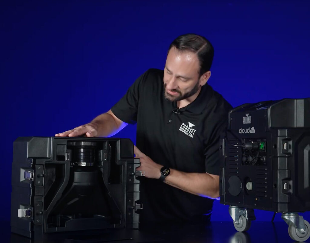 The housing has been completely redesigned with built-in reservoirs for both water and fog fluid, as well as a clever storage compartment that houses the hose and all your essential accessories. You’ll spend less time digging through cases.
